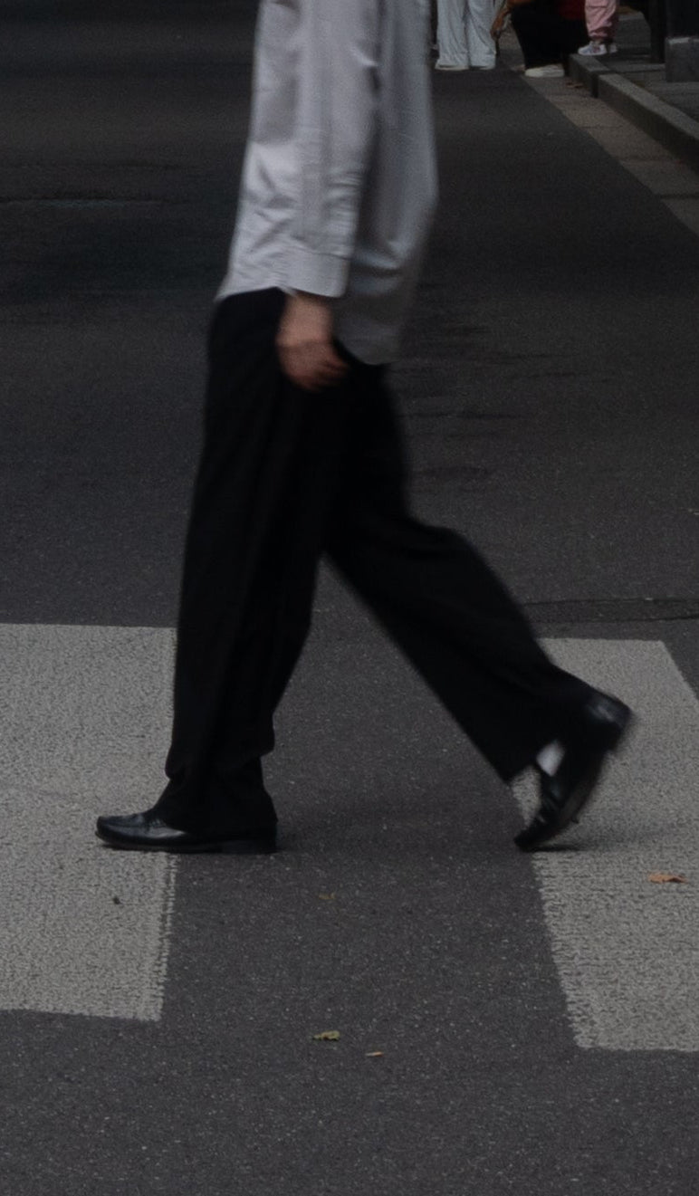 Our first product, the Cashmere Pleated Trousers in Shanghai.